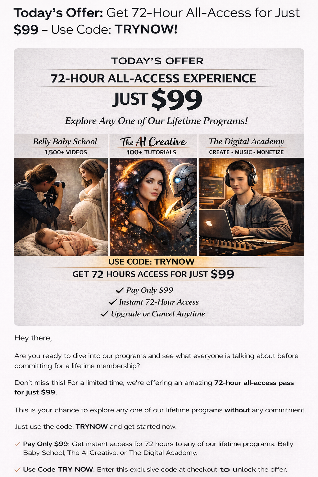 Gives you access to our AI Creative Lessons and Tutorials as well as our Marketing using Chat GPT and other technologies and Apps. Incudes new Basics AI and all Mini Tutorials